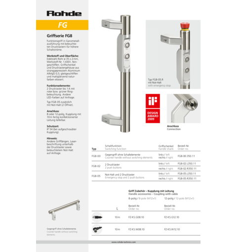 | Produkt Typ FG8-02 | Beschreibung 2 Drucktaster | Griffschenkel Ausführung rechts | Bestell-Nr. FG8-02.R350.11 3D+CAD |