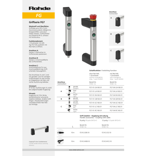 | Produkt Typ FG7-01 | Beschreibung 1 Drucktaster | Griffschenkel Ausführung gerade |