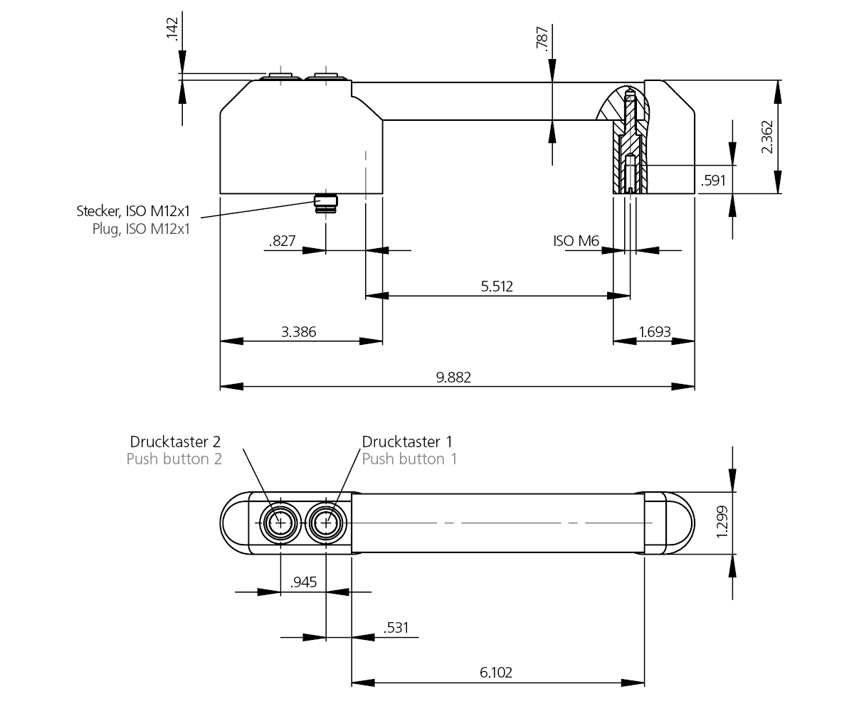 IO-Link fähiger Griff mit einfacher Einbindung von Drucktaster und LED-Ring an das Kommunikationssystem.