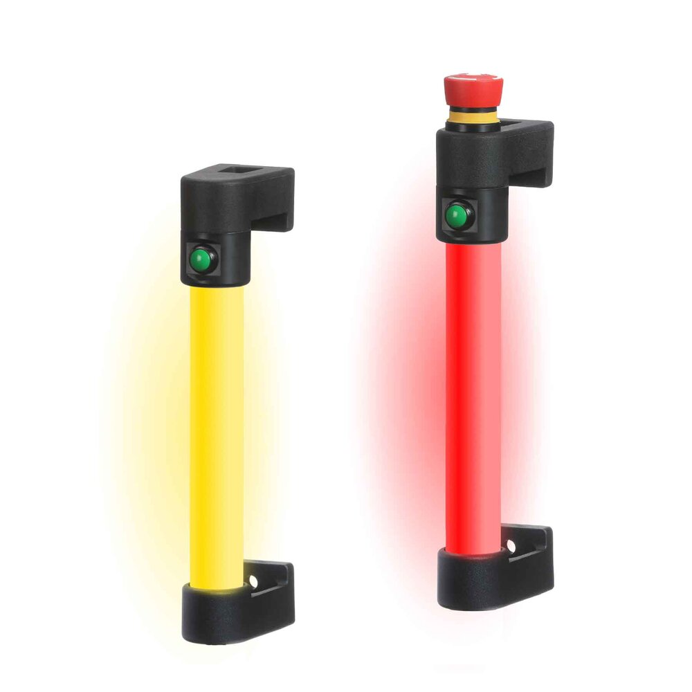LED Steg mit LED rot, gelb, blau und grün. Mit Not-Halt (2 Öffner), Drucktaster (Wechsler).