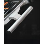 Griffschenkel und Griffsteg aus Aluminiumprofil AIMgSi 0,5. Griffschenkel glaskugelgestrahlt und halbglänzend eloxiert in 2 Standfarben. Griffsteg geschliffen und eloxiert.