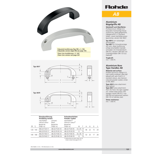 Type AB-F screw attachment from the front; this type supplied incl. cheese head screws with hexagon socket DIN 912, nuts DIN 934 and galvanized washers DIN 125 of stainless steel.