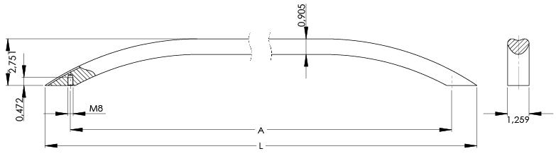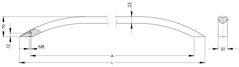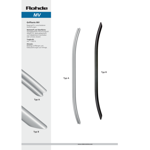 Handle type MV-32.F incl. stainless steel screws with hexagon socket ISO7380 M8 × 25.