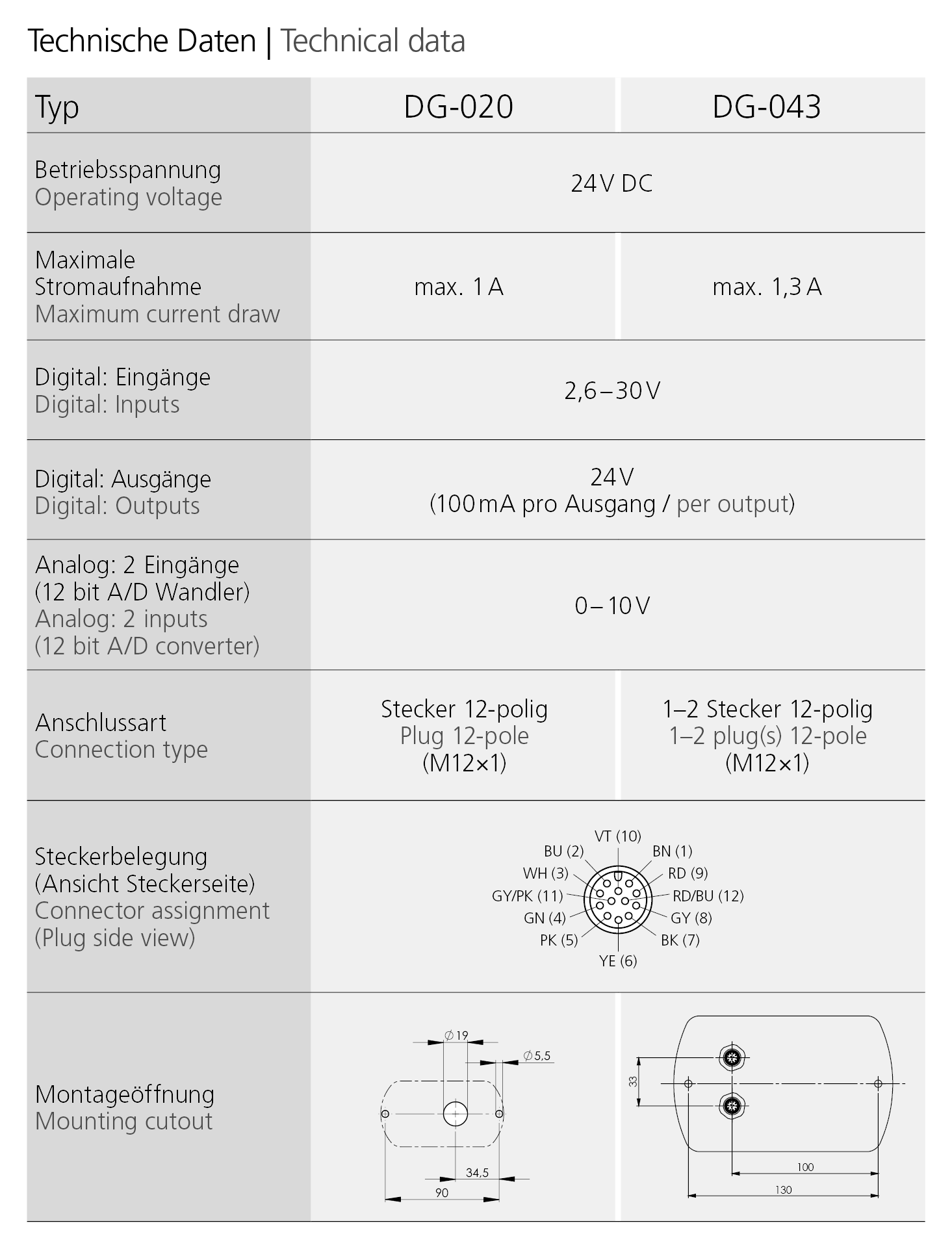 | Digital inputs 12 | Analog inputs 04 | Digital outputs 04 | Connecting 2 x M12 |