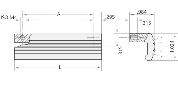 Profiled aluminium AlMgSi 0.5; vibration ground, matted and anodized in 2 colours. Alternatively titanium coloured powder coated.