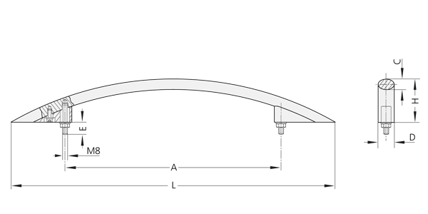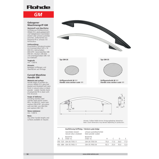 Handle ledge of profiled aluminium AlMgSi 0.5; glass ball blasted and anodized with satin finish in natural colour or black powder coated. Handle shank of polyamide PA6, black with fine structure.