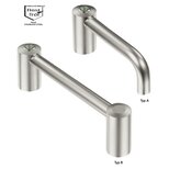 Handle shanks and handle ledge made of stainless steel 1.4305. Surface vibration ground, blasted and electropolished with a semi-gloss finish. Push button made of stainless steel.