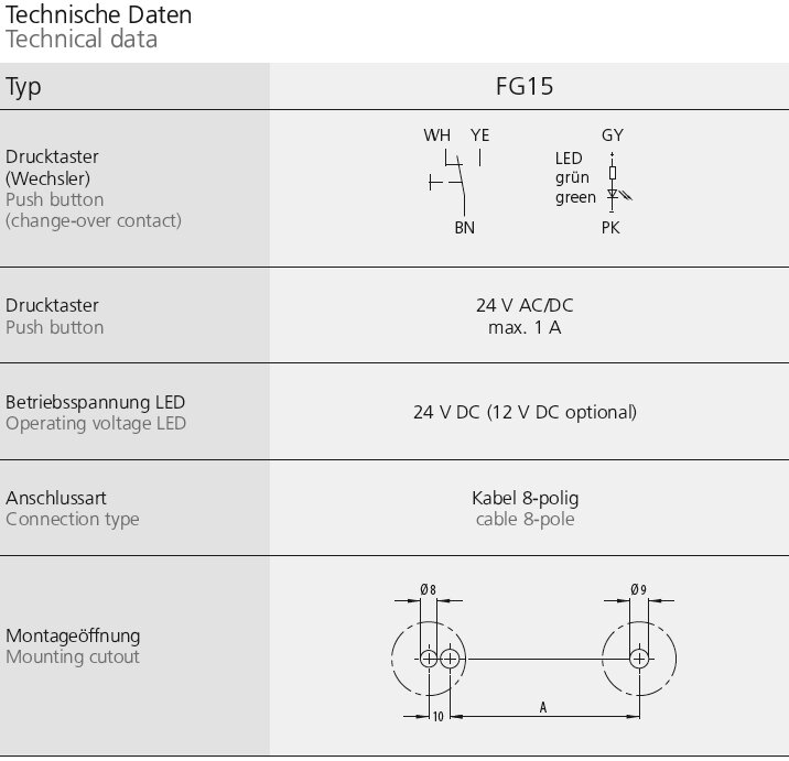 | Type FG15-01 | Switching function 1 push button | A 180 |