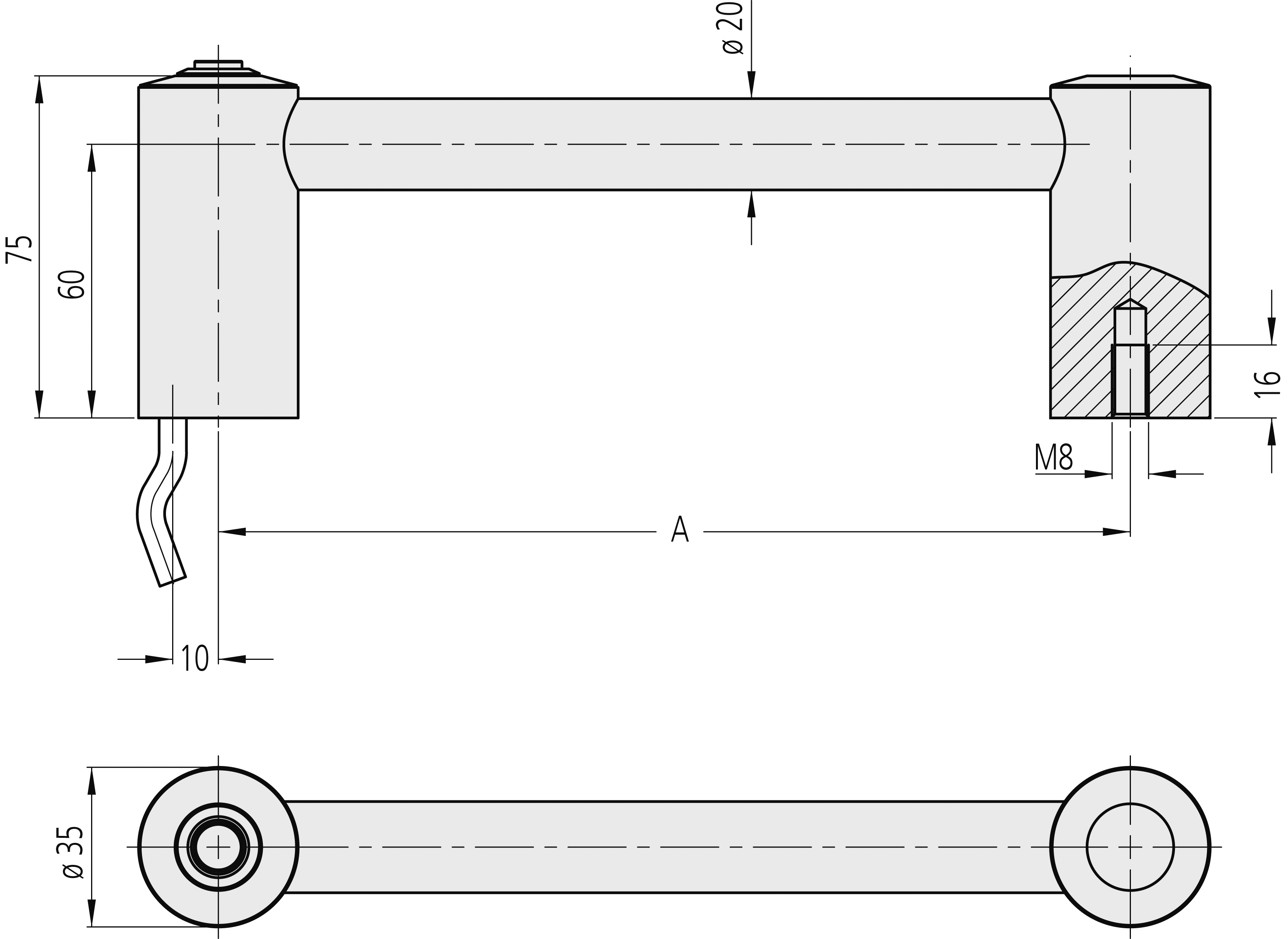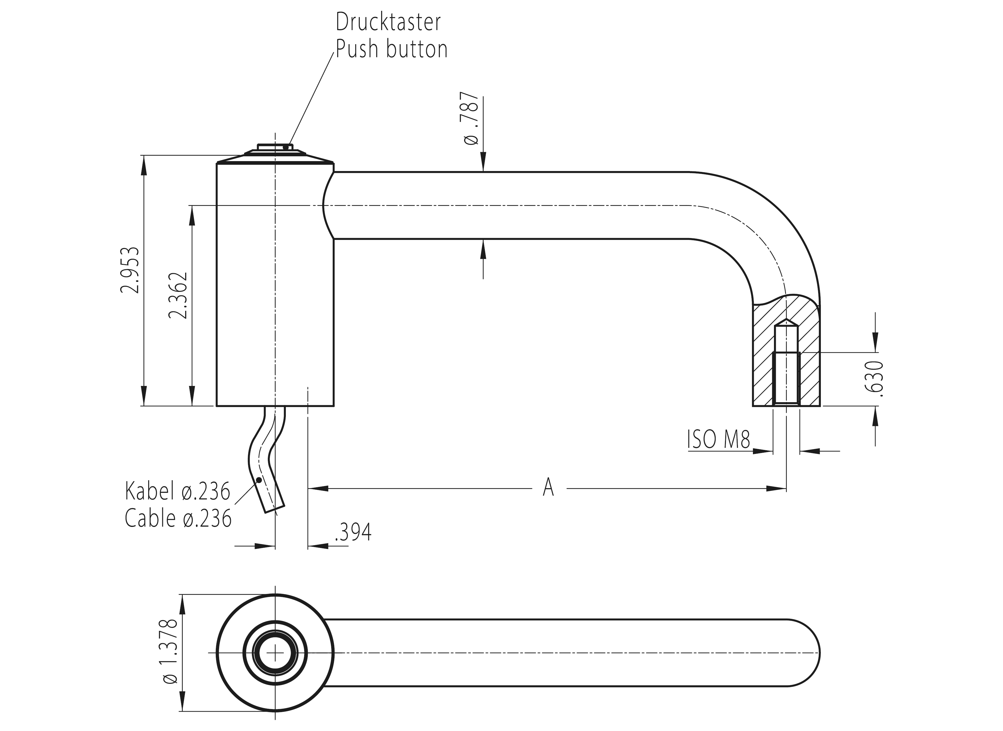 Other handle lengths and push button assignments possible. Opposite handle without electrical function by request.