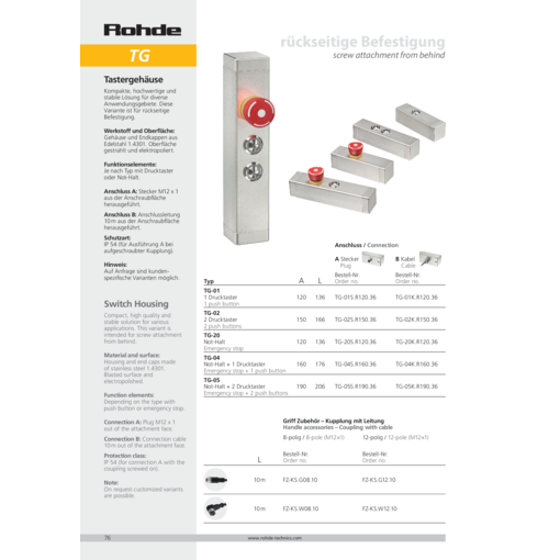 | Product Type TG-20 | Description 1 emergency stop | A 120 | L 136 |