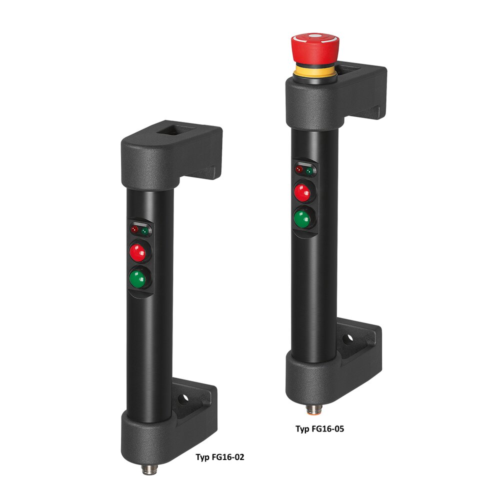 | Product Type FG16-05S | Description 2 push buttons, emergency stop and 2 LEDs | Order-No. FG16-05S.180.84 3D+CAD |