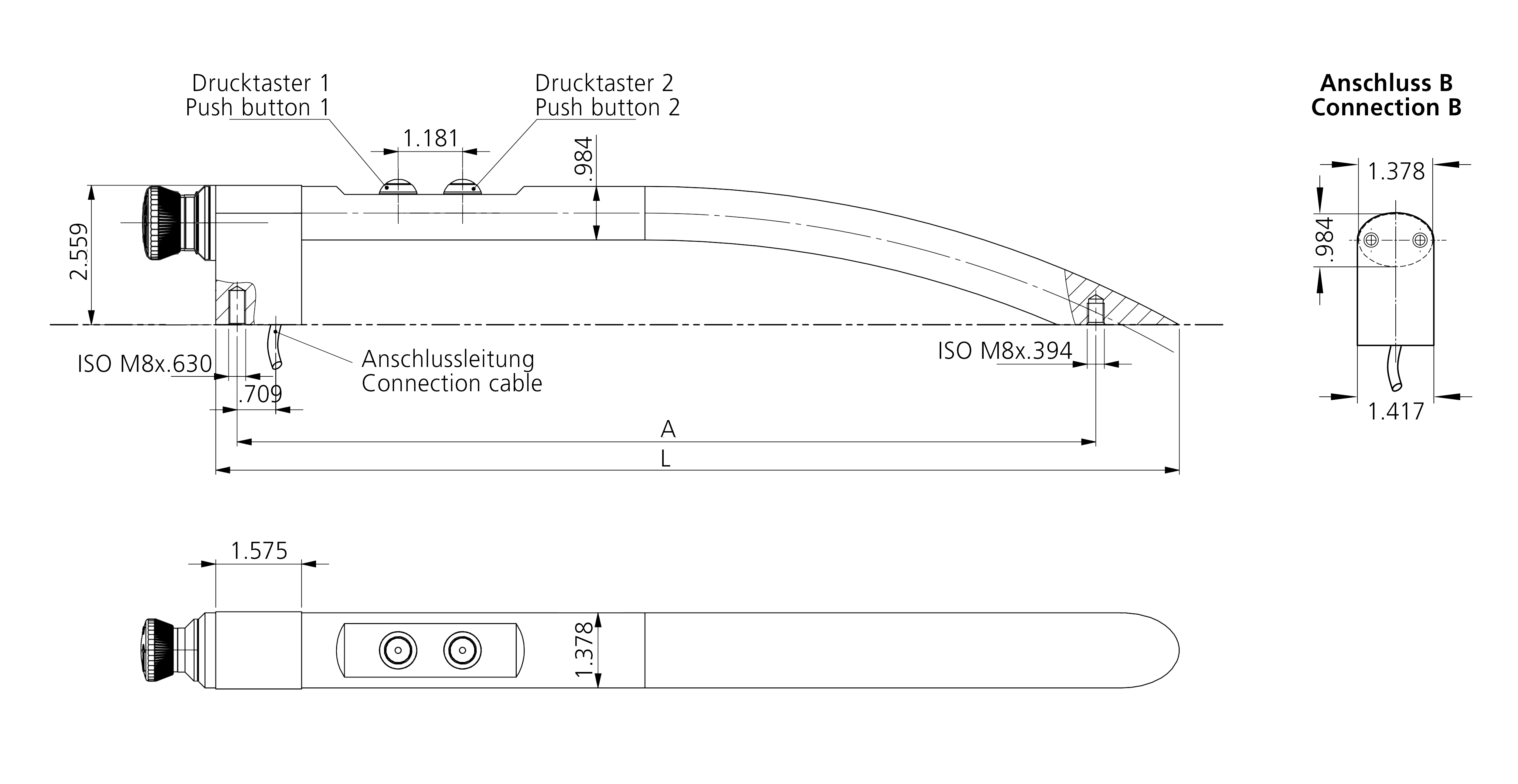 Other handle lengths or push button colors on request.