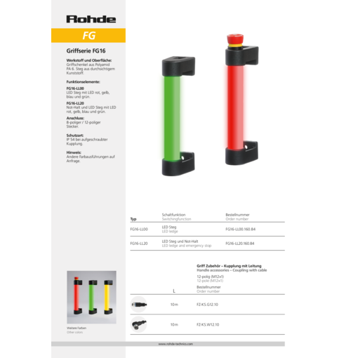 With connection cable other push button assignment or other handle lengths on request.