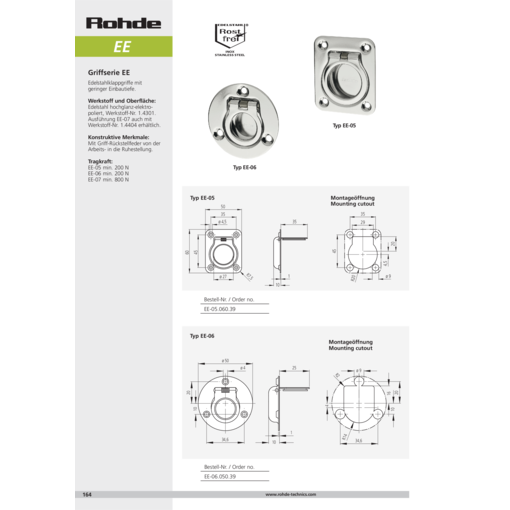 Stainless steel high gloss electropolished, material no. 1.4301 or 1.4404 (316L).