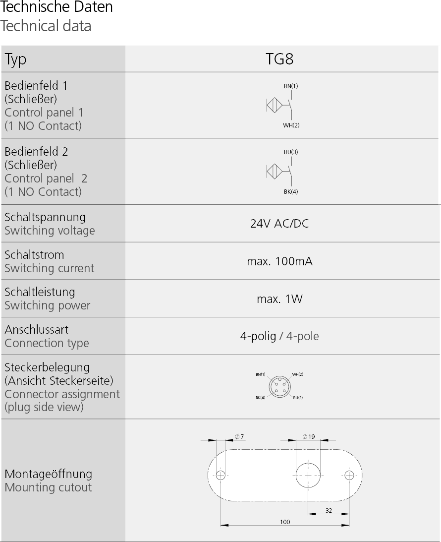| Description 2 Control panels | Order-No. TG8-PI2.100.46 3D+CAD |