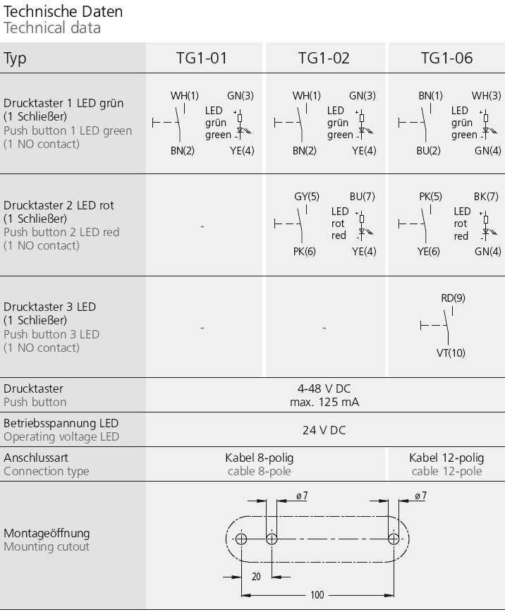 | Product Type TG1-02 | Description 2 push buttons |