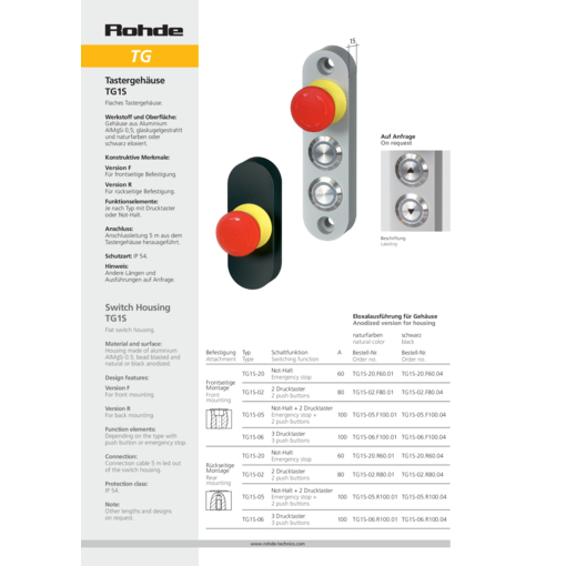 | Product Type TG1S-02 | Description 2 push buttons | A 80 |
