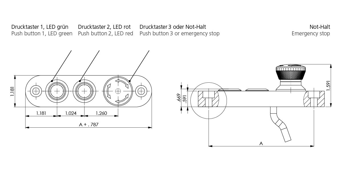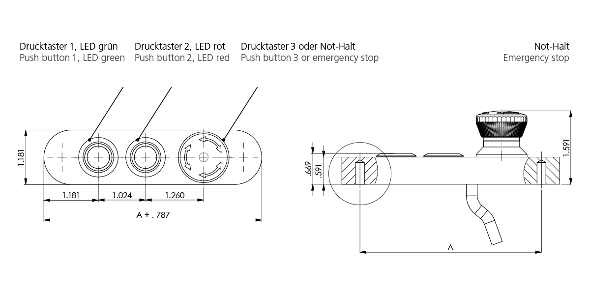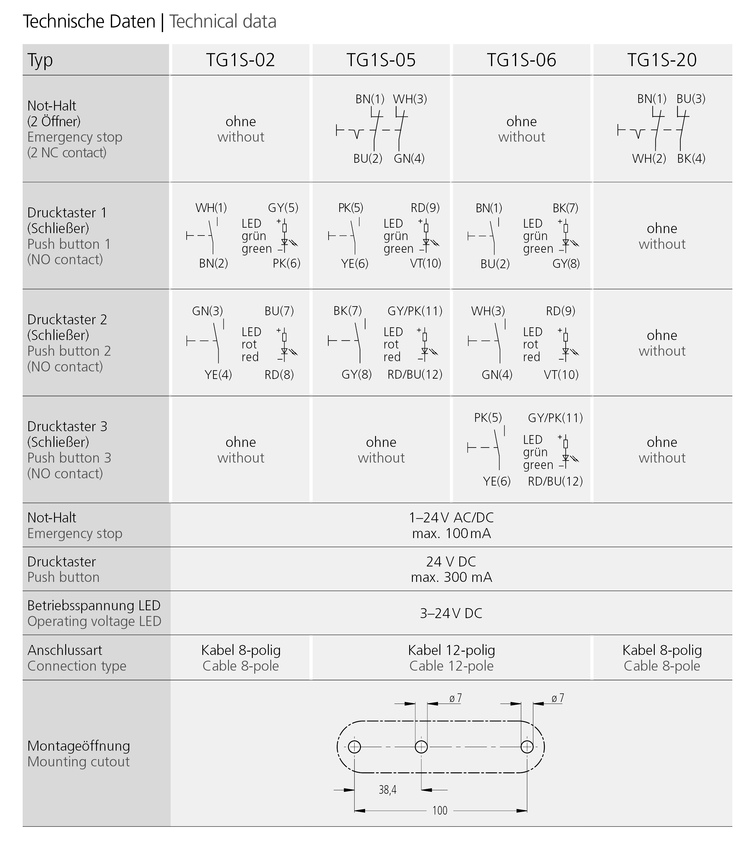 | Product Type TG1S-05 | Description 2 push buttons + emergency stop | A 100 |