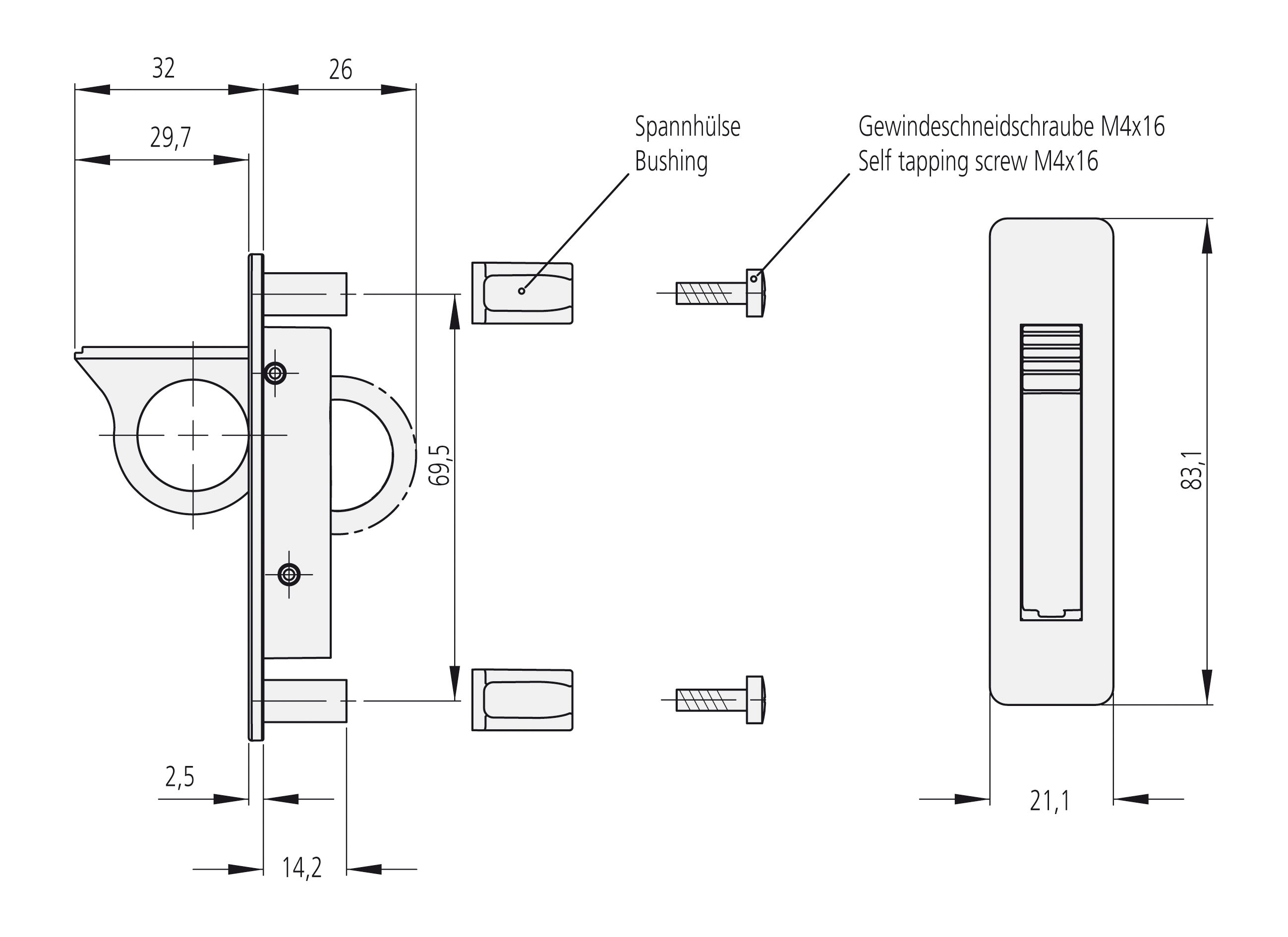 Wall thickness max. 6,4 mm. Delivery incl. fastening material