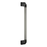 Soportes laterales del asa de poliamida PA6, reforzado por fibra de vidrio, negro, similar RAL 9005. Tubo del asa de tubo de perfil ø35x2 mm de acero inoxidable, material Número. 1.4301 y superficie pulida. Insertos de rosca de acero inoxidable, material Nro. 1.4305, torneado.
