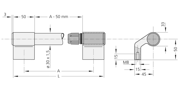 | Piezas individuales Tubo 1m, Ø 30 x 1,5 | Color natural | Núm. de pedido W1-30.001.01 |