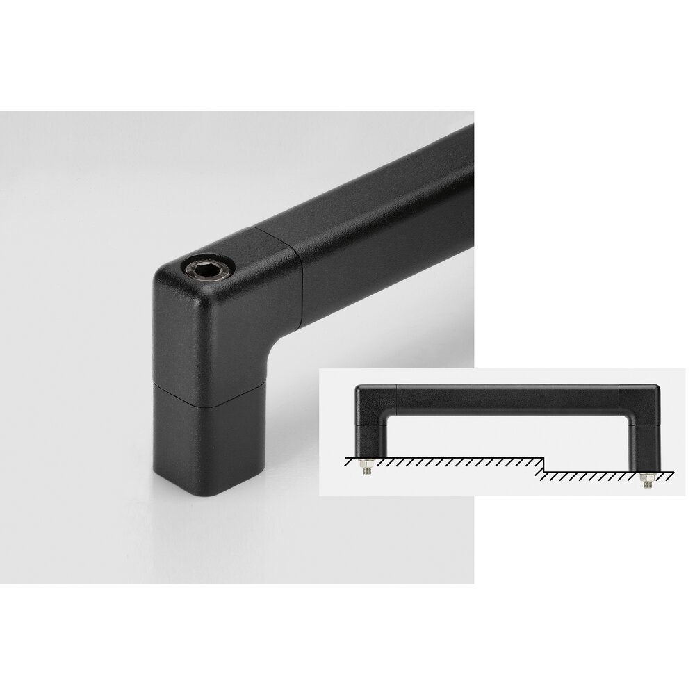 Posibilidad de elección de largos del asa, alturas de los soportes del asa y distancia de atornillado entre soportes del asa variables.