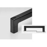 Soportes laterales del asa de fundición de aluminio en coquilla AlSiCu 12. Tubo del asa de aluminio extruido AlMgSi 0,5. Pintado con polvo negro, semimate.