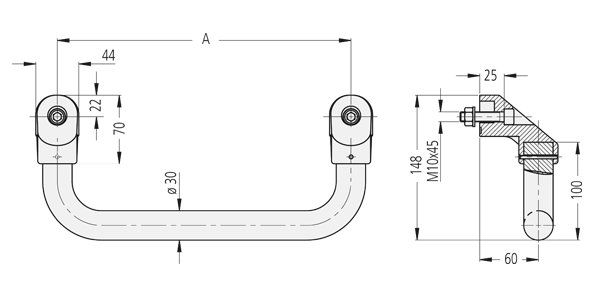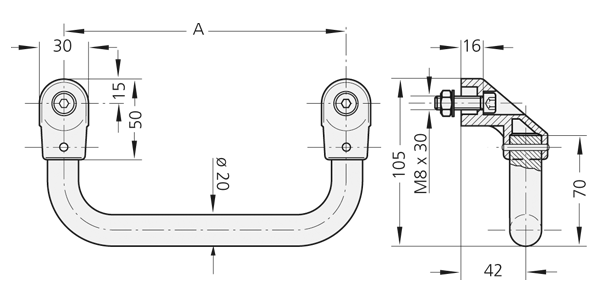Arco conector de Ø20 o Ø30 de aluminio redondo AlMgSi 0,5; anodizado con acabado semimate, disponible en dos colores. Alternativa: con revestimiento en polvo negro.