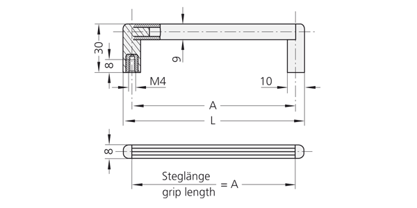 Otros largos de asa disponibles bajo pedido. Tubo y soportes laterales del asa se suministran de forma no montada.