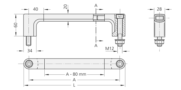 Incluye tornillos cilíndricos galvanizados en negro M12x70 DIN 912, arandelas galvanizadas DIN 125 y tuercas DIN 934. Tubo y soportes laterales del asa se suministran ya montados.