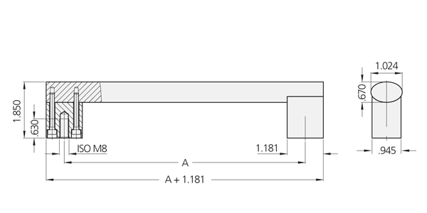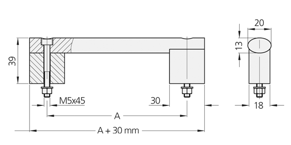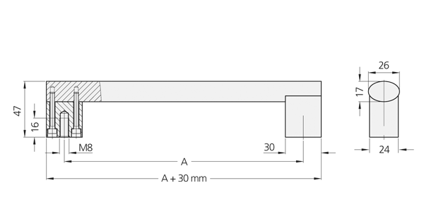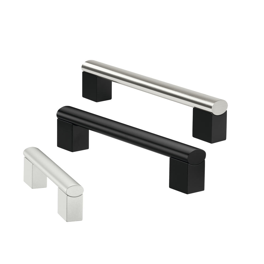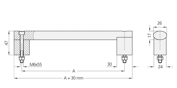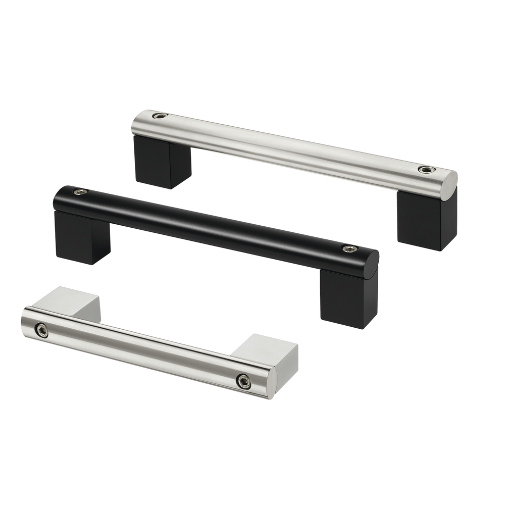 Pinzas de agarre de aluminio extruido AlMgSi 0,5; chorreado con microesferas de vidrio, satinado, anodizado en color natural o negro. Perfil de conexión de acero inoxidable 1.4307 pulido, brillo mate.