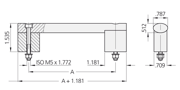 para atornillamiento en la parte anterior con tornillos cilíndricos de acero inoxidable con hembra hexagonal DIN 912, tuercas DIN 934 y arandelas DIN 125 (incluidos en la forma de entrega).