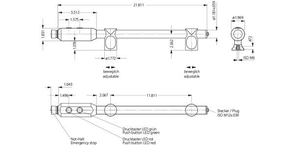 Otros largos de asas, rotulación de pulsador, o iluminación de parada de emergencia disponibles bajo pedido.