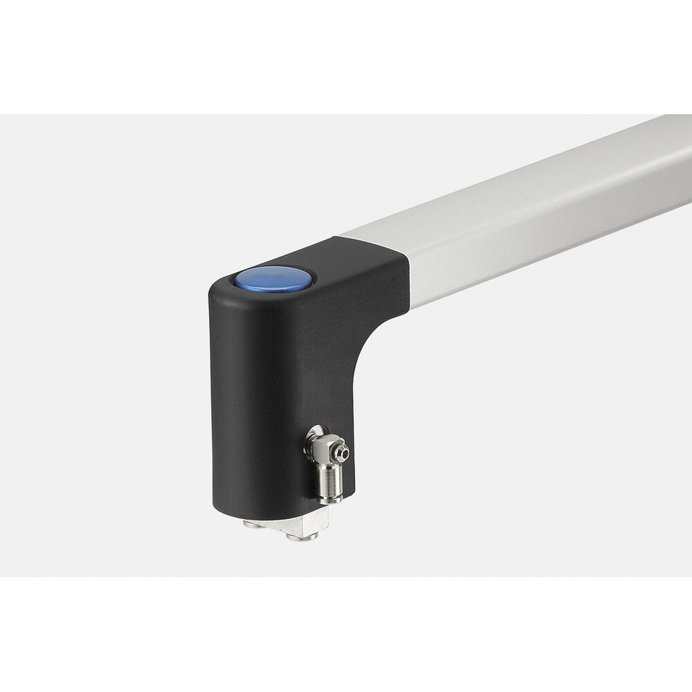 Pinzas de agarre de poliamida PA6, reforzado por bolas de vidrio, negro, similar RAL 9005, semimate con textura fina. Alma de unión de perfil de aluminio, anodizado, en color natural.