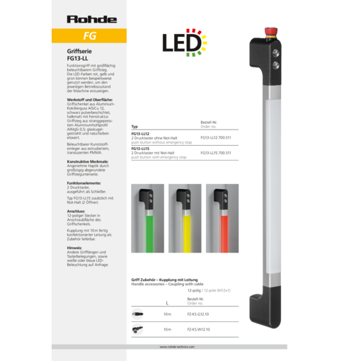 2 pulsadores, con función de conmutador Tipo FG13-LL15, adicionalmente con parada de emergencia.