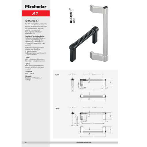Pour appareils et faces avant 19“.Ce sont leurs composants massifs en aluminium et la résistance élevée aux charges qui caractérisent ces séries de poignées disponibles en modèles et longueurs variables.