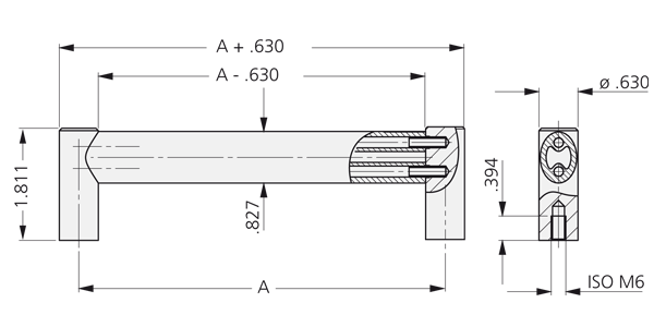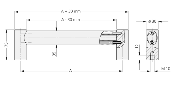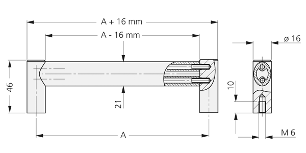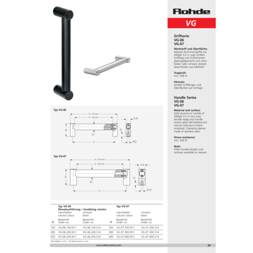 Poignées en aluminium massif AlMgSi 0,5 disponibles en deux tailles. Traverse et côté de la poignée renforcés aux billes de verre, anodisés de couleur naturelle ou noire. Douilles de serrage en acier inoxydable.
