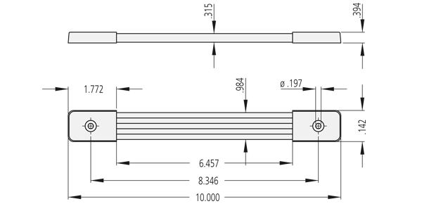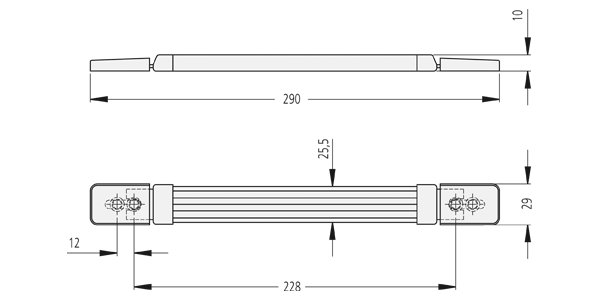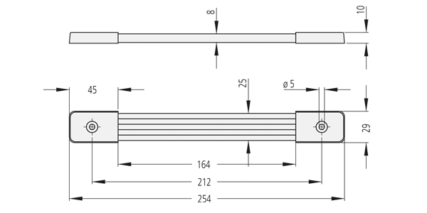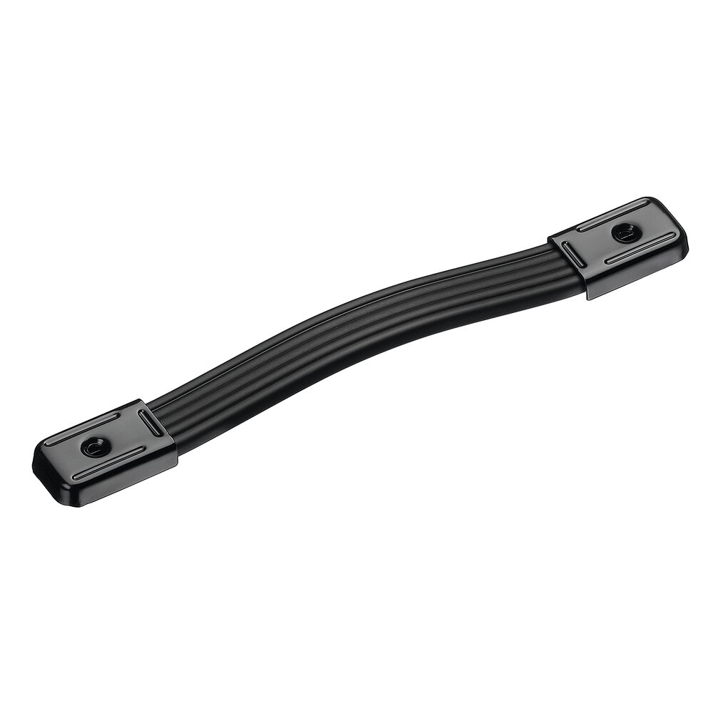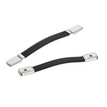 Poignées en plastique souple noir avec ressort en acier interne. Capuchons en acier nickelé ou peint par poudrage noir.