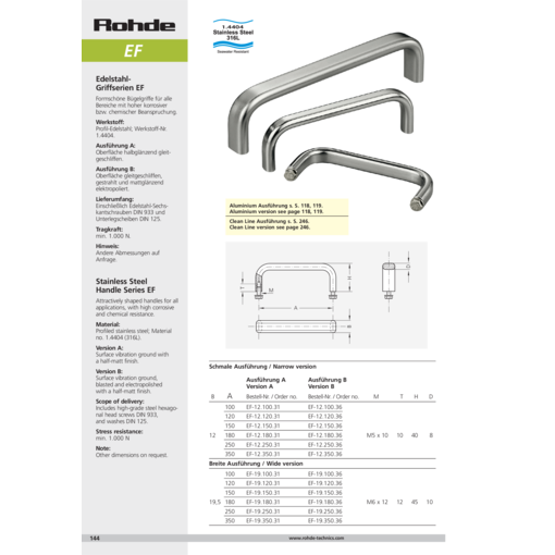 En acier inoxydable Poignées étrier esthétiques pour toutes les zones soumises à une sollicitation par corrosion ou par des substances chimiques.