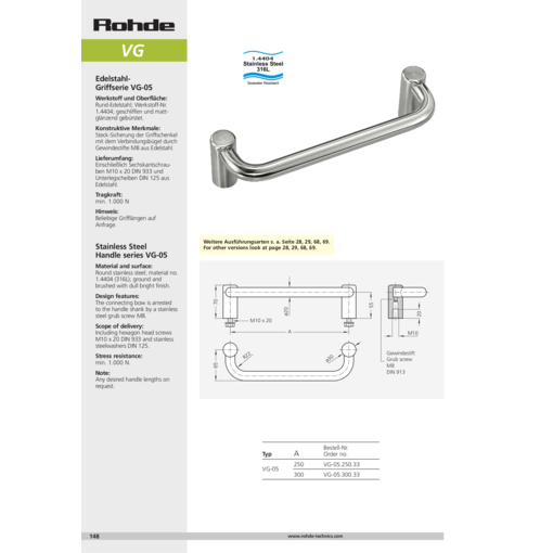Toute autre longueur de poignée sur demande.