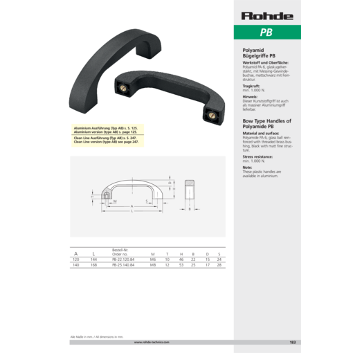 Questa maniglia in plastica è disponibile anche in alluminio massiccio (ved. modello maniglia AB).