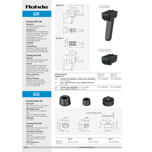 モデルCは厚み2 - 3 mmのボトムプレート用インサートフィートとして使用。