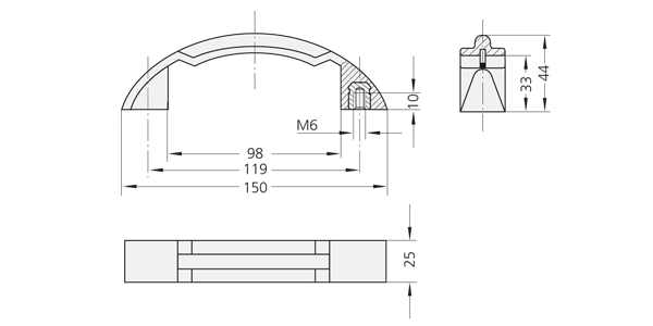 熱可塑性樹脂PA6、グラスファイバー強化、 真鍮製ネジ穴。