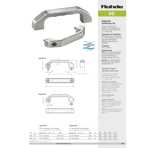 ハンドルタイプ EG-1R 六角ボルトDIN 933及び ワッシャーDIN 125付き。