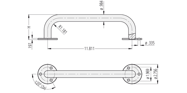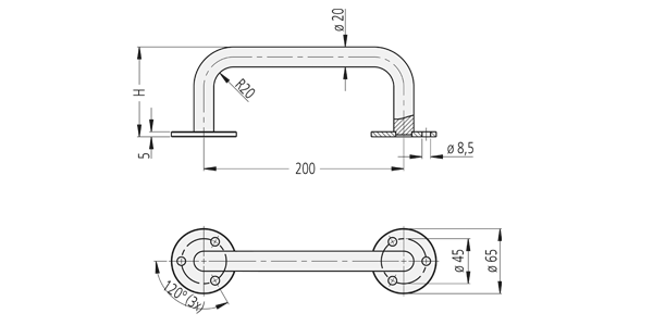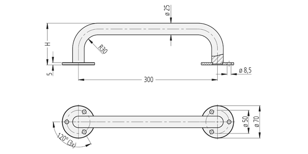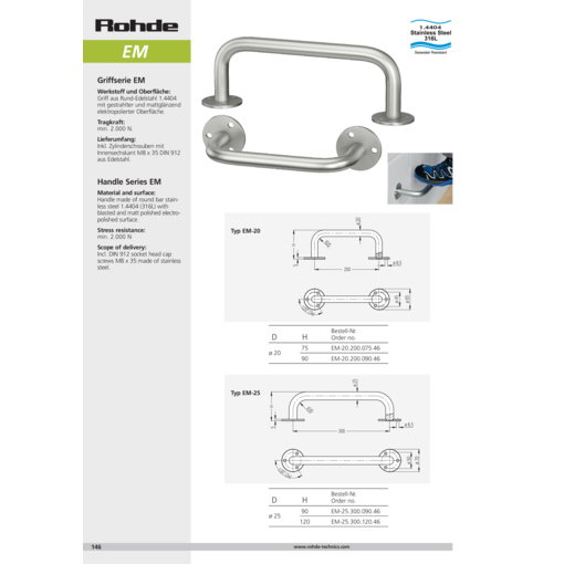 1.4404丸ステンレス鋼製ハンドル、ブラストおよび電解研磨によるマット光沢表面。
