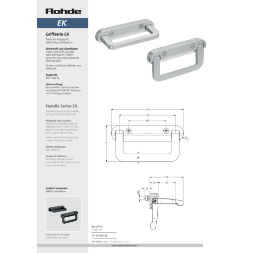 素材1.4404ステンレス製ホルダーおよびハンドル、ブラスト仕上げでつやを消すように電解研磨