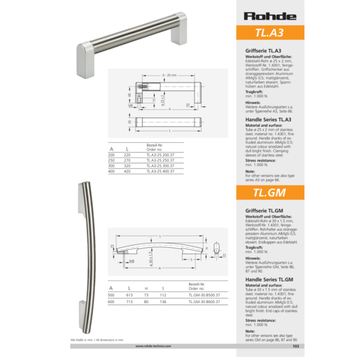 ステンレススチールパイプリ30x1.5 mm、 材質-番号1.4301、 精密研磨加工済パイプ・ホルダー 押出成型アルミニウムAlMgSi0.5材、艶消し状の光沢感、自然色、陽極酸化処理済。エンドキャップ ステンレススチール製。