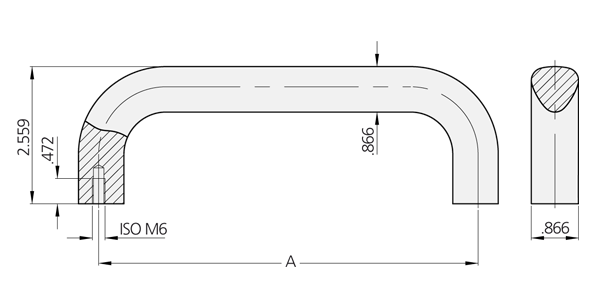 Massieve aluminium handgreep van AlMgSi 0,5.