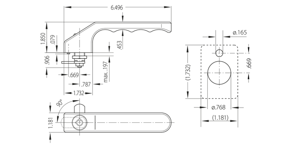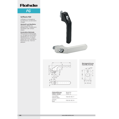 Handgreephendel met vergrendeling voor machines en technische installaties.