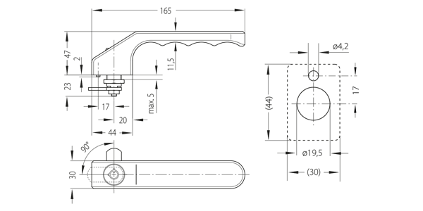 mechanisch insteekslot voor vergrendeling, inclusief cilinderstift ø4x10 mm beveiliging tegen verdraaien. Geschikt voor materiaaldikten tot 5 mm en een klembereik tot max. 19,9 mm.